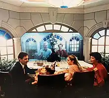 The term telepresence was coined in a 1980 article by Minsky, who outlined his vision for an adapted version of the older concept of teleoperation that focused on giving a remote participant a feeling of actually being present at a different location.[5] One of the first systems to create a fully immersive illusion of presence in a remote location was the Virtual Fixtures platform developed in 1992 at the U.S. Air Force's Armstrong Labs by inventor Louis Rosenberg. The system included stereoscopic image display from the remote environment as well as immersive touch feedback using a full upper-body exoskeleton.[6][7][8]