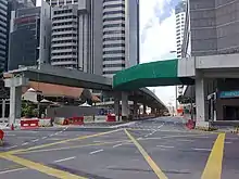 During the station's construction, a temporary viaduct was built along Cross Street.[11] The two-lane 407-metre (1,335 ft) bridge, which ran between Central Boulevard and China Street, was constructed to replace the closed lanes that had to make way for the station's construction.[14][15][16] Work on the viaduct began on 3 February 2008[14] and it opened for traffic on 28 December that year.[17][18] Three subsequent ramps to the viaduct were opened over the course from February to April 2009.[19][20][21]