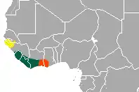 | Temmick's red colobus range shown in yellow | |
