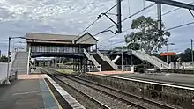 The 1918 steel footbridge and stairs are of aesthetic significance as an intact representative footbridge structure designed and manufactured by Dorman Long & Co and are a landmark structure within the relatively visually isolated setting of the station.[2]