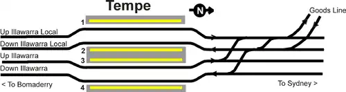 This Wikipedia article contains material from Tempe Railway Station Group, entry number 01266 in the New South Wales State Heritage Register published by the State of New South Wales (Department of Planning and Environment) 2018 under CC-BY 4.0 licence, accessed on 2 June 2018.