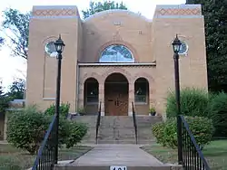 The Cumberland Presbyterian Church building, continued to serve as the congregation's place of worship until 1941, when the current temple building was completed. Construction of the new building was funded with money accumulated in a building fund that had been started in 1924. The building was designed by Memphis architect Carl Heyer and constructed by Jackson building contractor Hubert Owen. Pews from the Cumberland Presbyterian Church building were installed in the new building; these pews are still in use. Classrooms were added to the building in 1962.[2]
