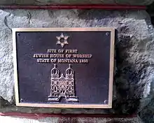 The United Hebrew Benevolent Society also developed the Home of Peace Cemetery,[3] which, due to the large numbers of Jewish people who left Helena (and much of Montana) during the Great Depression, now contains more bodies than the current living Jewish population of Helena.[10][11] In nearby Butte, Montana, the Hebrew Benevolent Society of Butte followed, in 1881. The Butte Jewish community formed Congregation B'Nai Israel in 1897, completing their Temple 1903.[11]