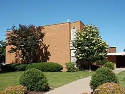 A second Temple Emanuel was built at Brady and Eleventh Streets in 1906. Newspaper publisher E.P. Adler helped the congregation through the Great Depression years. In 1944 the city block at Twelfth Street and Mississippi Avenue was purchased by the congregation. The third synagogue was built from 1952-1953 for $375,000.[1] ($3.8 million in present-day terms[4]). New York City architect Percival Goodman, a leading theorist of modern synagogue design, designed the building in the Modern architectural style.[5][6] In 2011 when they celebrated their 150th anniversary, Temple Emanuel counted 150 families in its congregation.[1]