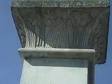 The presence of George Loddiges, nurseryman and scientist, on the garden cemetery's design team, may account for Hosking's final choice of the Sacred Lotus flower for the decorative motifs at the tops of the Abney Park entrance pylons; a plant closely associated with the Nile and Egyptian religious symbolism. Botanical iconography was evidently preferred to "sphinxes" and other populist or polychromatic Egyptian revival designs; and from Bonomi's accurate studies and drawings in Egypt, both the "flower heads" / "seed heads" and petals/sepals of the Sacred Lotus could be perfectly carved as pylon decorations that survive to this day (see photo).