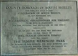 - "Inauguration of Temple Memorial Park, South Shields - South Tyneside Libraries". southtynesidehistory.co.uk. Retrieved 7 May 2020.