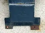 Temple VI is 3.67' long by 2.5' wide by 10.33' high. The metal work of public art has a base of four pieces made from the same steel material that is bolted to the concrete sidewalk. On the lower proper right portion of the sculpture, near the base, lies a foundry mark that identifies the title, artist, and location of the sculpture's creation.