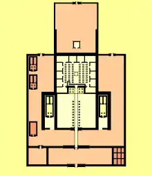 It stood within a mud-brick enclosure, and was orientated to the east, possibly with an entrance to the west. It led to an open court surrounded by square pillars and colossal statues of Akhenaten and Nefertiti.[3]