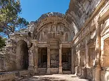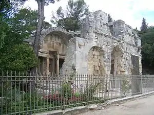 The so-called Temple of Diana is a 1st-century ancient Roman building in Nîmes, Gard, built under Augustus. It is located near the gushing spring of "La Fontaine", around which was an Augusteum, a sanctuary devoted to the cult of the emperor and his family, centred on a nymphaeum. Its basilica-like floor plan argues against it being a temple and there is no archaeological or literary evidence for its dedication to Diana.[1]