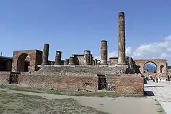 The Temple of Jupiter, Capitolium, or Temple of the Capitoline Triad, was a temple in Roman Pompeii, at the north end of its forum. Initially dedicated to Jupiter alone, it was built in the mid-2nd century BC at the same time as the Temple of Apollo was being renovated – this was the area at which Roman influence over Pompeii increased and so Roman Jupiter superseded the Greek Apollo as the town's highest god. Jupiter was the ruler of the gods and the protector of Rome, where his temple was the center of Roman religion and of the cult of state.