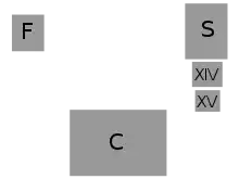 The Temple of the Foliated Cross is directly across the courtyard from the Temple of the Sun, and both are adjacent to the Temple of the Cross. Temple XIV and Temple XV are two smaller temples are found between the Temple of the Sun and the Temple of the Cross. The picture to the left is a reconstruction as seen from the Temple of the Foliated Cross, although Temple XV is missing from the illustration.[6]