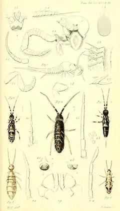 - 1836b. Thysanurae Hibernicae or descriptions of such species of spring-tailed insects (Podura and Lepisma Linn. ) as have been observed in Ireland. Trans. Ent. Soc. Lond. 1: 89–98, pls. 11, 12.