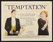 Temptation is a 1923 American silent drama film directed by Edward LeSaint and starring Bryant Washburn, Eva Novak, and June Elvidge.[1]