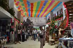To help preserve the tradition, in 2014, the town hosted the first National Rebozo Contest, sponsored by FONART and the state tourism secretary.[21] It attracts over thirty artisans and about 3,500 people each year with pieces available here running between 200 and 15,000 pesos.[22]