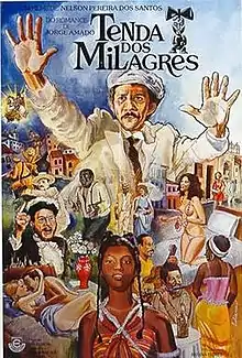 Tenda dos Milagres is a 1977 Brazilian drama film directed by Nelson Pereira dos Santos, based on the novel of the same name by Jorge Amado. Starring Hugo Carvana, Sonia Dias and Severino Dada, it exposes and satirizes racism in Brazilian society—the most notable example being a flashback scene where Brazilians are shown listening with approving interest to Nazi race theories in the late 1930s. Tenda dos Milagres was shot in Salvador, Bahia.[1]