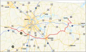 State Route 96 (SR 96) is an east–west and north–south highway in Middle Tennessee. The road begins in Dickson and ends in Granville. The current length is 126.7 mi (203.9 km).[1] Along its path it goes through 10 counties. Locals mostly refer to it as Highway 96.