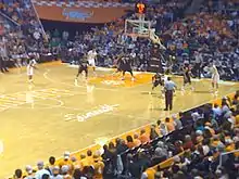 The Tennessee Volunteers men's basketball team is the collegiate men's basketball program for the University of Tennessee–Knoxville. The Volunteers (commonly referred to as the "Vols") compete in Division I of the National Collegiate Athletic Association (NCAA) and the Southeastern Conference (SEC). The Volunteers play their home games in Thompson–Boling Arena, on a court nicknamed "the Summitt", after former Tennessee Lady Vols basketball coach Pat Summitt. With a current capacity of 21,678 (formerly 24,535), Tennessee has consistently ranked in the top 15 in the nation in terms of volume of attendance, averaging 14,817 (60.39% capacity) attendance from 1988 through 2006, and averaging 17,194 (79.34% capacity) attendance from 2007 through 2018 after reducing seating capacity prior to the 2007 season.[3][4] Historically, Tennessee ranks third in the SEC in all-time wins.[5] Many notable players have played collegiately at Tennessee—players such as Bernard King, Dale Ellis, Allan Houston, Tobias Harris, and Grant Williams who all play(ed) in the NBA.