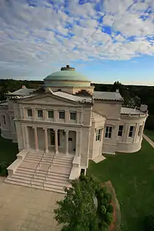 Sculptor Jack Rich described Tennessee marble as an "excellent sculptural stone," though difficult to work with due to its hardness.[23] Two of the best known Tennessee marble sculptures, E.C. Potter's lions, "Patience" and "Fortitude," stand outside the entrance of the New York Public Library Main Branch.[24] The Piccirilli Brothers also worked with the stone, most notably creating the entrance tripods at the Lincoln Memorial in Washington,[25] and several statues at the base of the USS Maine National Monument in New York.[26] The Italian-born sculptor Albert Milani (1892–1977), who worked at the Candoro Marble Works in Knoxville, created numerous works using Tennessee marble, including the four eagles atop the Knoxville Post Office and the "History of the World" relief at the Pennsylvania State Capitol.[1] Other notable Tennessee marble works include Frances Rich's nurses' memorial ("Spirit of Nursing") at Arlington National Cemetery;[27] Bruno Louis Zimm's Slocum Memorial Fountain in New York's Tompkins Square Park;[28] Joseph Emile Renier's Pomona at Brookgreen Gardens in South Carolina;[29] and Cliff Fragua's statue of the Pueblo leader Po'pay in the National Statuary Hall.[30]