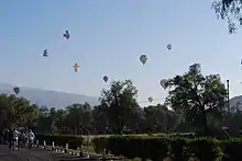 In the 2000s, two other annual events have been added the Festival Aerostatico Teotihuacan and the Festival Musica para los Dioses. The Festival Aerostatico Teotihuacan (Teotihuacan Hot-Air Balloon Festival) has been held each year since 2005. The event attracts about 15,000 people each year with an average of twenty balloons participating. Other events include paragliding and skydiving exhibitions, ultragliders, a farming and livestock show, and a gastronomy and crafts fair. The 2010 event was dedicated to the Bicentennial of Mexico's Independence and featured a dirigible 44 meters long and the return of John Ninomiya, a man who is able to fly attached to a bunch of balloons. The event takes place at the “Globopuerto Volare, located on the Tulancingo-Teotihuacan highway.[13] The Festival Musica para los Dioses (Music for the Gods Festival) is an annual rock and roll event. The festival has attracted as many as fifty bands and crowds of more than 20,000. Attendees bring or rents camping gear, including tents in a secure location as a recreation of Woodstock to stay for the 35-hour event. The annual festival has been going on since 2006 and has featured acts such as the Babasónicos, Maldita Vecindad, Instituto Mexicano del Sonido and Panteón Rococó. The Festival Musica para los Dioses is considered to be the most important rock and camping fest in all of Mexico.[14]