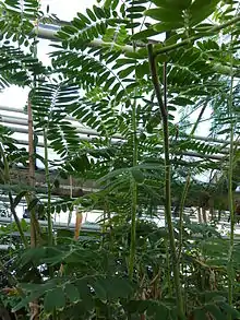 It is a herb or small tree that is native to tropical Africa and has also been used in tropical America as well as South and Southeast Asia.[4] It is commonly used to deter pests and diseases, specifically fleas and ticks on animals. It is not suitable for livestock or human consumption because it is not highly nutritious and can be poisonous for fish and some other animals.[4] Since it is a nitrogen-fixing plant, it can be intercropped with other plants and used as a source of green manure.[5]