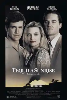 Tequila Sunrise is a 1988 American romantic crime film starring Mel Gibson, Michelle Pfeiffer, and Kurt Russell, with Raul Julia, J. T. Walsh, Arliss Howard, and Gabriel Damon in supporting roles. It was written and directed by Robert Towne, with an original music score composed by Dave Grusin.