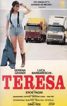 Teresa is a 1987 Italian comedy film written and directed by Dino Risi,[1][2][3] that stars Serena Grandi and Luca Barbareschi. It tells the story of Teresa, an attractive young widow who works as a lorry driver to pay off her husband's debts.