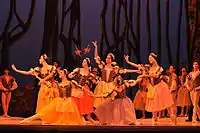 It is one of the stable organizations (alongside the Chorus) created from the start of the theatre in 1979. Its debut was in 1980,[2] and since then it has played several important ballets such as The Nutcracker, Guaraira Repano, Swan Lake, Carmen, and others.[2] It is currently composed of around 30 dancers from all over the country.