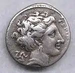 In the fifth century BC the Greek cities Croton and Locri, both located on the Ionian Sea, vied for the control of ports on the Tyrrhenian Sea. These ports were important for conducting trade. Locri had founded the cities Medma and Hipponium there and had assumed control of Metauros. Temesa lay north of Hipponium and had close relations with Croton, which may have been its mother city. Temesa was valuable because of its copper mines and its trade with the north. Locri conquered Temesa at some time in the first half of the fifth century BC, probably in the 480s or 470s. Croton was disadvantaged by the loss and founded Terina at this time to compensate.[2] Terina's foundation is dated to 480–470 BC.[3] It started minting its own coins sometime after 480 BC, which indicates that it soon became independent from its mother city.[4]