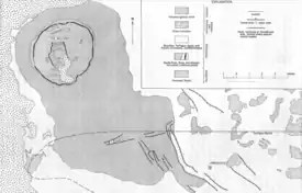 The third-largest producer of quicksilver in the area was the Study Butte Mine located 5 miles east of Terlingua. Cinnabar was discovered here in 1902 and mined since 1905. The property was operated in World War II by the Texas Mercury Co. Cinnabar occurs in ore-bearing fractures or veins within a syenite intrusion. The mine included four principal shafts and two medium-sized furnaces.[9] The mine was soon abandoned when water was encountered, flooding the works.[3]: 63