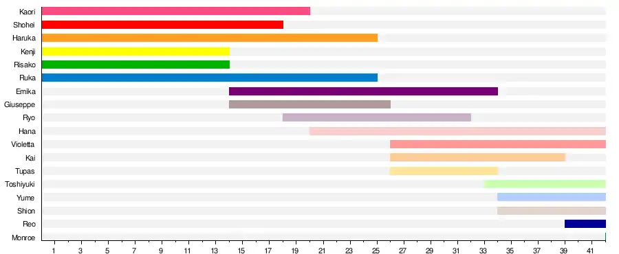 | 08 | Giuseppe Durato | デュラト・ジュゼッペ | Peppe | Manga artist | December 24, 1992 | 27 | 14 - 26 | 13 |