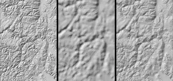 - Texture generation: Creating a simulated land cover elevation layer in GIS, such as a random scattering of "trees," then generating a shaded relief of this.[15]