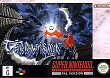 Terranigma was first previewed in mid-1995 and slated for an October launch window. Early previews prior to release showcased several differences compared to the final version such as the ability to climb the five towers outside using claws, different room layouts and plant decorations around the HUD.[17][18][19] It was first released in Japan on October 20, 1995, by Enix for the Super Famicom under the name Tenchi Sōzō.[20] The title was then released in Europe on December 19, 1996, by Nintendo.[21][22] It was also released in Spain in April 1997 and in France on the summer of 1997.[23][24][25][26] The game wound up never being published in North America because Enix had already closed its US subsidiary by the time the localization was finished.[27]