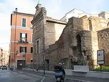 Porta Pescara is the name of the only doors existing today of the town walls that defended Chieti, one door dating back to the 13th century, the other built in 1797 on the orders of Baron Francesco Farina, an important administrator. The older one, which shows an elegant pointed arch, was realized in stone thanks to the donations collected by the bishop of Chieti. Their name derives from the fact that they gave access to the old road to today's Pescara.[4]