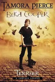 Terrier is a young adult fantasy novel by Tamora Pierce, the first book in the Provost's Dog trilogy and the fifteenth book set in the Tortall Universe. It tells the story of Rebakah "Beka" Cooper, the ancestor of George Cooper from Song of the Lioness and Alianne from Trickster's Choice and Trickster's Queen. It is set 200 years prior to the bulk of the Tortall novels.