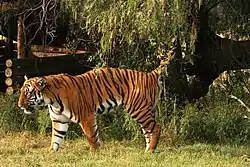 Scent marking, also known as territorial marking or spraying when this involves urination, is a behaviour used by animals to identify their territory.[8][9][10] Most commonly, this is accomplished by depositing strong-smelling substances contained in the urine, faeces, or, from specialised scent glands located on various areas of the body. Often, the scent contains pheromones or carrier proteins such as the major urinary proteins to stabilize the odours and maintain them for longer.[11][12] The animal sniffing the scent frequently displays a flehmen response to assist in detecting the mark. Scent marking is often performed by scent rubbing in many mammals.[13] In many mammal species, scent marking is more frequent during the breeding season.[14]