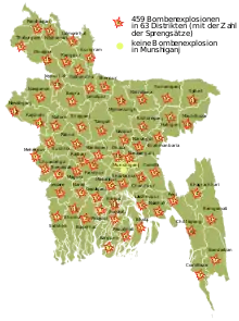 ![]() The bomb blasts carried out by Jamaat-ul-Mujahideen Bangladesh on 17 August 2005. | ||||||
