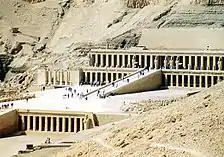 The Luxor Massacre took place on 17 November 1997, at Deir el-Bahri, an archaeological site and tourist destination located across the River Nile from Luxor, Egypt. In the mid-morning attack, Islamic terrorists from Al-Gama'a al-Islamiyya ("The Islamic Group") and Talaa'al al-Fateh (Vanguards of Conquest), both of which are suspected of having ties to al-Qaeda massacred 62 tourists at the attraction. The six assailants, armed with automatic firearms and knives, were disguised as members of the security forces. They descended on the Temple of Hatshepsut at around 08:45 and massacred 62 people, their modus operandi including beheadings and disembowellings. The attackers then hijacked a bus, but armed Egyptian tourist police and military forces arrived soon afterwards and engaged in a gun battle with the six terrorists, who were later killed or committed suicide.