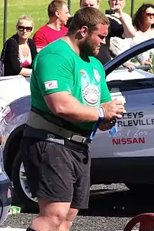 Terry Hollands (born 6 June 1979) is a British bodybuilder and the winner of the 2bros Pro Luke Sandoe Classic Beginners Class 2019 bodybuilding championships. Hollands was also a former strongman competitor and winner of Britain's Strongest Man and England's Strongest Man competitions. He's also a Europe's Strongest Man silver (2010) & bronze (2017) medalist, a 2 x time World's Strongest Man bronze medalist (2007 & 2011), a 2 x time Arnold Strongman Classic 8th-place winner (2011 & 2012), World's Ultimate Strongman 9th-place winner (2018), and the 5th most prolific strongman contestant in history having competed in more than 90 international competitions, winning 4 of them throughout 17 years.[3] With 12 international event wins, Hollands is noted for his vehicle pulling skills, making him the 6th best vehicle puller in strongman history. He was nicknamed Terry 'The Tank' Hollands or 'Big Tel'.[4]