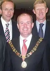 Terry Shannon (born 12 June 1962) is an Irish Fianna Fáil politician and a former Lord Mayor of Cork. He has served on Cork City Council since 1999, representing the South East electoral area.[1] Prior to his election to the council, Shannon was a member of the Fianna Fáil National Youth Committee, chairperson of Cork North Central Ógra, and election agent to TD Micheál Martin.[2] Shannon topped the poll in his first city council election with a 14.2% share of the vote.[3] He has been re-elected four times, in 2004, 2009, 2014 and 2019. He was elected to the office of Lord Mayor on 24 June 2011, having previously served as Deputy Lord Mayor in 2009.[1][4]