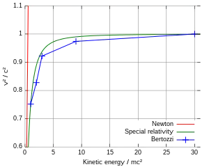 - Bertozzi, William (1964), "Speed and Kinetic Energy of Relativistic Electrons", American Journal of Physics, 32 (7): 551–555, Bibcode:1964AmJPh..32..551B, doi:10.1119/1.1970770