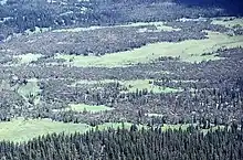 The Teton–Yellowstone tornado was a rare high-altitude tornado which occurred on July 21, 1987, in the U.S. state of Wyoming.[1][2] Rated at F4 on the Fujita scale, it remains the strongest tornado ever recorded in the state and the only recorded F4/EF4 tornado in Wyoming history.[3][4] The tornado cut through a 39.2-kilometre (24.4 mi)-long and 2.5-kilometre (1.6 mi)-wide swath of the Teton Wilderness and Yellowstone National Park, crossing the Continental Divide.[1] Damage occurred at elevations ranging from 8,500 to 10,000 feet (2,600 to 3,000 m), making it the highest-altitude violent tornado recorded in the United States.[2] At the time, it was the highest-elevation tornado known,[5] since surpassed by several others, including a 2004 tornado above 12,000 feet in California's Sequoia National Park.[6] While no human fatalities or injuries occurred,[3] an estimated one million trees were felled by the tornado.[7] The tornado damage was originally thought to be the result of strong thunderstorm straight-line winds until the area was surveyed by University of Chicago severe weather meteorologist Ted Fujita and his colleagues, who published a paper in 1989 surveying the tornado's path and discussing its meteorological character.[1]