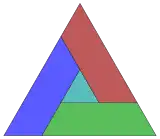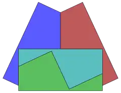 In geometry, a tetrad is a set of four simply connected disjoint planar regions in the plane, each pair sharing a finite portion of common boundary. It was named by Michael R. W. Buckley in 1975 in the Journal of Recreational Mathematics. A further question was proposed that became a puzzle, whether the 4 regions could be congruent, with or without holes, other enclosed regions.[1]