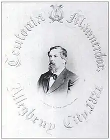 The Teutonia Männerchor was founded in 1854 as an offspring of an organization called “Liederkranz” founded in 1851 by Rev. Karl R. Weiterhausen. Later, the Liederkranz became the Freier Männerchor and then the Teutonia Männerchor. The name Teutonia is in reference to one of the oldest German Tribes.[3] The Teutonia Männerchor is a part of the Pittsburgh district of the Nord-Amerikanischer Sängerbund.