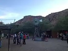 The show is produced by Texas Panhandle Heritage Foundation, a not-for-profit organization.[13] It was founded by Margaret Pease Harper on May 7, 1961.[14][15][16] Along with Harper, the first board of directors included Pete Cowart, Jerry LaGrone, Dorothy Nebelett, Raymond Raillard, William A. Moore, and Avent Lair.[16] In July, they discussed their initial purpose, which was to "recapture, recreate, and preserve the history of the Texas Panhandle by the presentation of a symphonic drama in a permanent theater in the Palo Duro Canyon of Texas."[17] In September 1961, the organization incorporated legally and the group came to represent 40 West Texas counties.[16] The first project of the group was to build an amphitheater in Palo Duro Canyon, which would have as a backdrop a 600-foot cliff.[16][18] The theater, named Pioneer Amphitheater, was eventually built with 1,600 seats.[16]