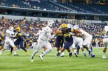 The Javelinas football team in action against the Texas A&M–Commerce Lions in 2014