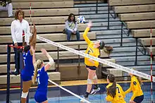 The Javelinas volleyball team in action against the Texas A&M–Commerce Lions in 2014