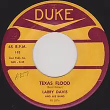 "Texas Flood" (sometimes called "Stormin' in Texas" or "Flood Down in Texas") is a blues song recorded by Larry Davis in 1958. Considered a blues standard, it has been recorded by several artists, including Stevie Ray Vaughan, who made it part of his repertoire.[1]