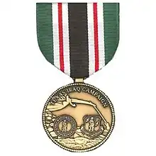 The Texas Iraqi Campaign Medal is a campaign/service award of the Texas Military Department issued to service members of the Texas Military Forces.[1]