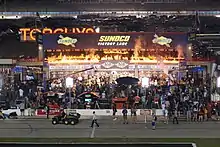 In June 2017, the track hosted the Stadium Super Trucks as a support event for IndyCar.[34] The series raced on a dirt track consisting of the infield, pit road, and the frontstretch. To promote the event, the speedway's turn two featured an off-road expo nicknamed the "Off-Road Ruckus", allowing visitors to drive their off-road vehicles along an obstacle course and observe exhibits.[35]
