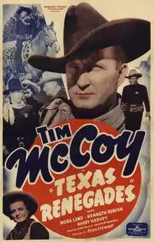 Texas Renegades is a 1940 American Western film directed by Sam Newfield and written by Joseph O'Donnell. The film stars Tim McCoy, Nora Lane, Kenne Duncan, Lee Prather, Harry Harvey Sr. and Earl Gunn. The film was released on January 17, 1940, by Producers Releasing Corporation.[1][2][3]